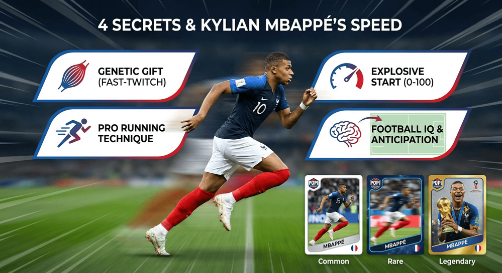 | ۱. استعداد ذاتی و ژنتیک (The Gift) | امباپه با فیبرهای عضلانی "تند انقباض" (Fast-Twitch) به دنیا آمده است. این عضلات به او اجازه میدهند تا در کوتاهترین زمان ممکن، حداکثر قدرت و سرعت را تولید کنند. این یک هدیه ژنتیکی است که با هیچ تمرینی به دست نمیآید. | حرکات انفجاری. توانایی او در پریدن، تغییر جهت ناگهانی و استارتهای سریع، نتیجه مستقیم این ساختار عضلانی است. |